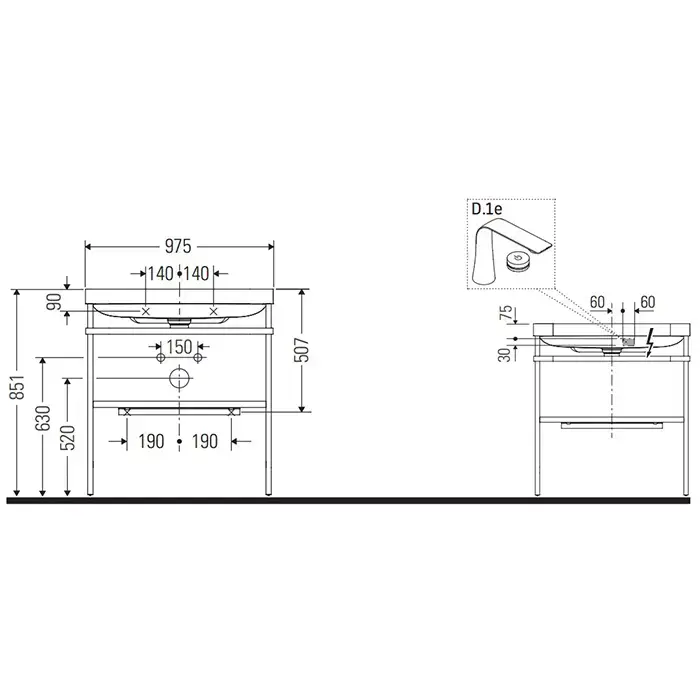 Duravit Happy D.2 Plus Консоль напольная с умывальником 975х490х850 мм, с 1 отв под смесит, 1 ящик, выпуск и сифон в комплекте, цвет белый глянцевый