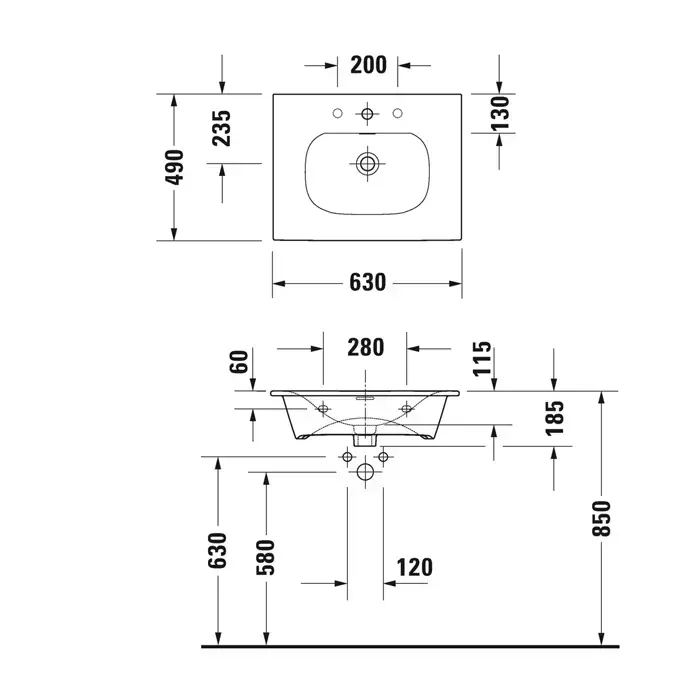 Duravit Viu Раковина подвесная с переливом, выпуск с керам покрытием, 2 отв под смес, 63х49см, покр WonderGliss, цвет белый