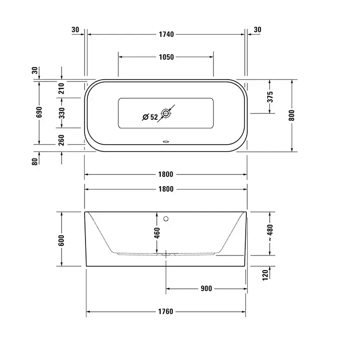 Duravit Happy D.2 Plus Ванна акриловая 1800х800мм, отдельностоящая, 2 наклона для спины, бесшовная акриловая панель,рама, цвет: белый