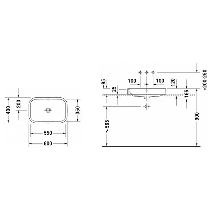 Duravit Happy D.2 Раковина 60х40см., накладная, без отв., со слив-переливом, с креплением, цвет: белый