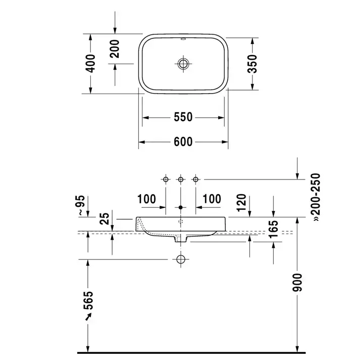 DURAVIT Happy D.2 Раковина шлифованная 60х40 см, без отв под смеситель,со слив переливом,с креплением, Цвет: белый с WonderGliss