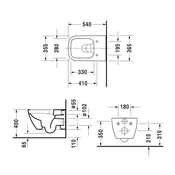 Duravit Happy D.2 Унитаз подвесной безободковый 54х36.5см., с креплением, Hygiene-Glaze, цвет: белый
