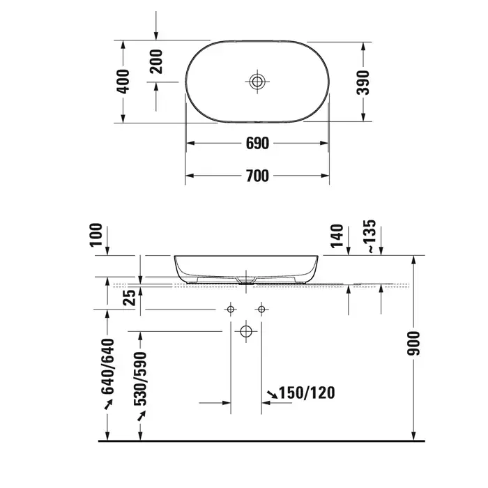 Duravit Luv Раковина накладная 70х40см, без перелива, цвет: белый