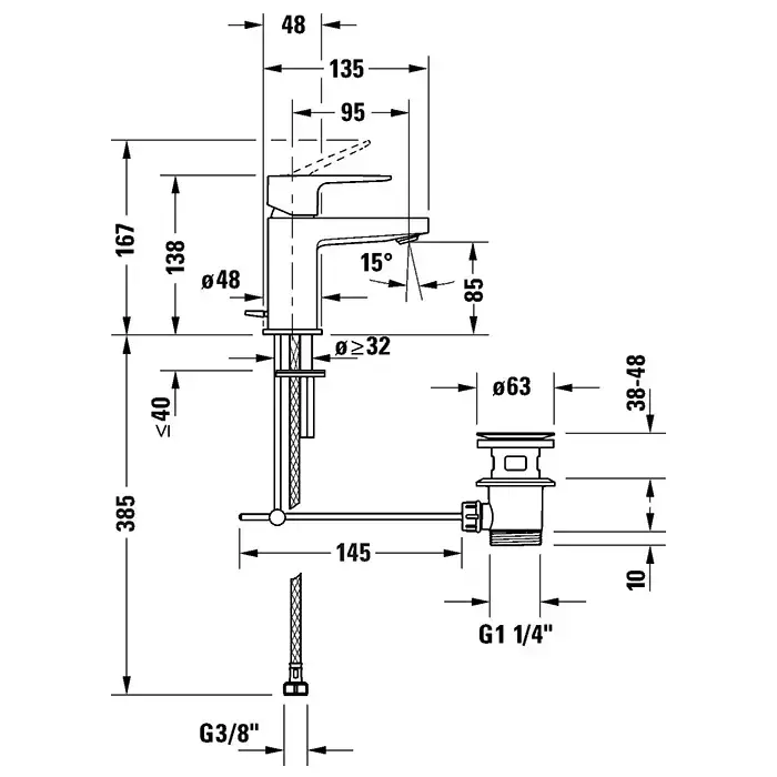 Duravit Manhattan Смеситель для раковины на 1 отв., H-138мм, Вылет 135мм, хром
