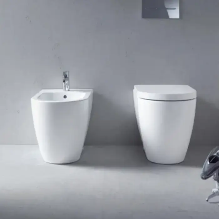 Duravit Me by Starck Биде напольное приставное 37х60 см, с 1 отв. под смеситель, с креплением, цвет белый с WonderGliss