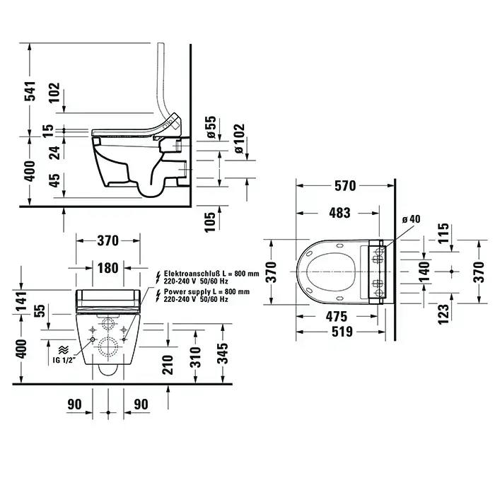 Duravit ME by Starck SensoWash Унитаз подвесной, вкл. крепление Durafix, включая компоненты для SensoWash со скр. подкл, 4,5л, 370x570мм, Цвет: Белый