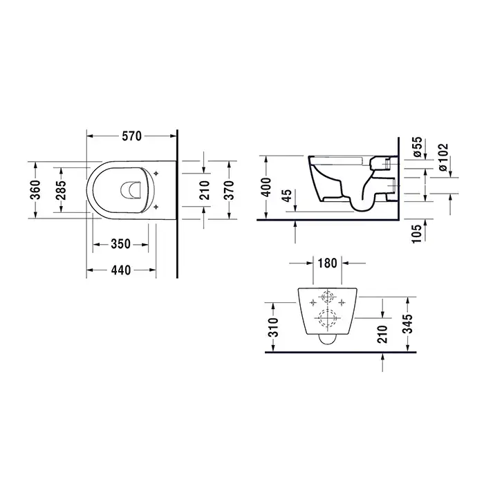 Duravit Me by Starck Унитаз 35.5х37х57см., подвесной, безободковый, с сиденьем, цвет: белый