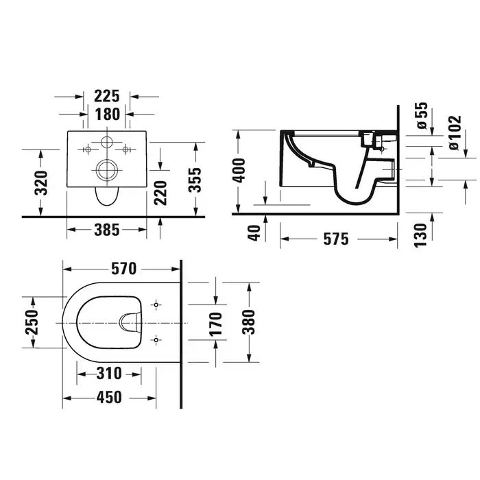 Duravit ME by Starck Унитаз подвесной укороченный Rimless 37х48см., вкл. крепление Durafix, 4,5л., 37х48см., белый