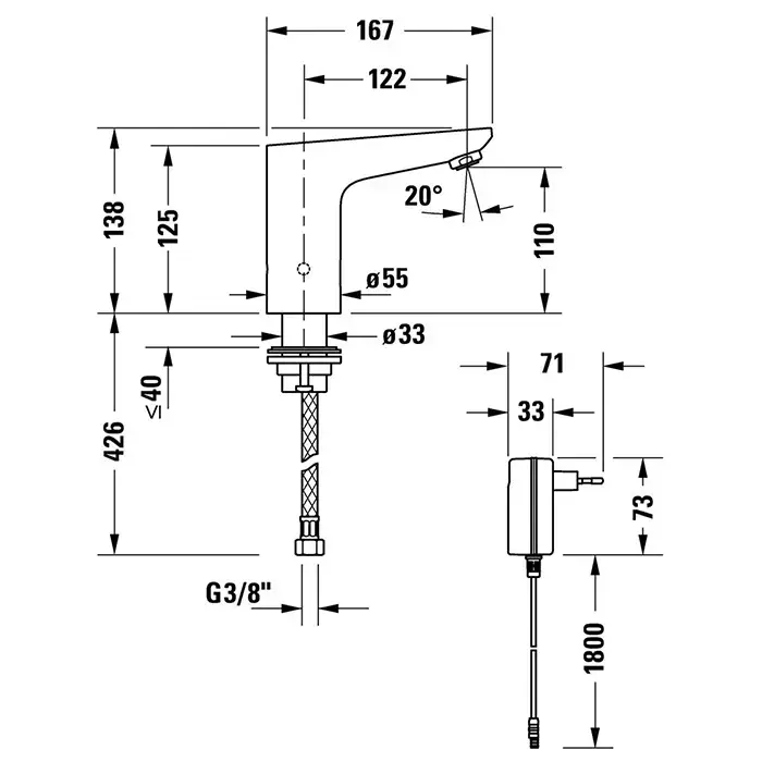 Duravit Sensor 1 Смеситель для раковины с иф датчиком,, хром/питание от сети