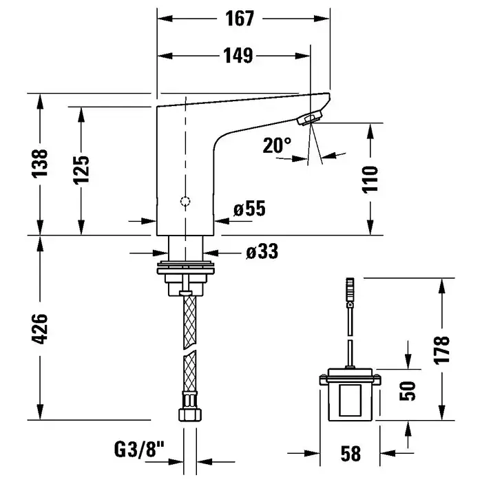 Duravit Sensor 1 Электронный смеситель для раковины, на 1 отв., с блоком питания, цвет: хром