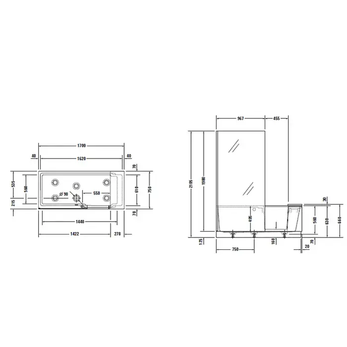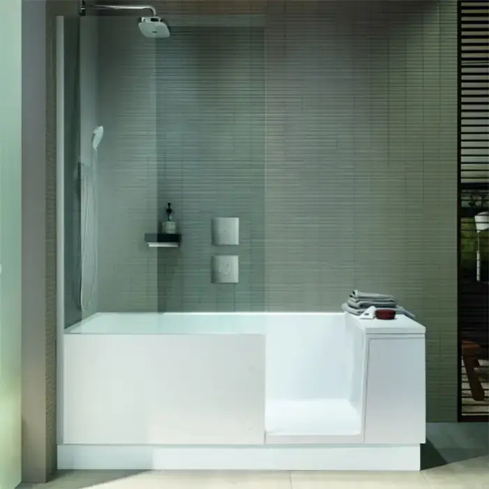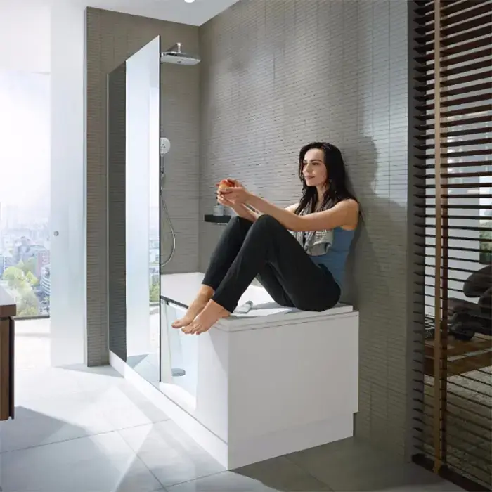 DURAVIT Shower + Bath Bathtub Ванна 1700х750хh2105 мм, с входной дверью и душевой шторкой, SX - левосторонняя, цвет: белый (без слива-перелива)