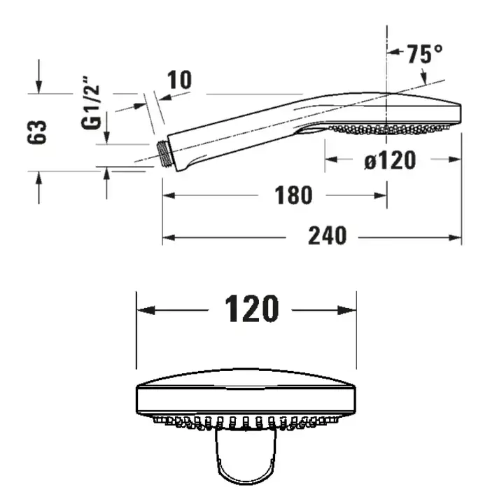 Duravit душевая лейка 3 режим Диаметр 120 мм, хром/белый, MinusFlow ограничение потока до 9 литров в минуту, черный матовый