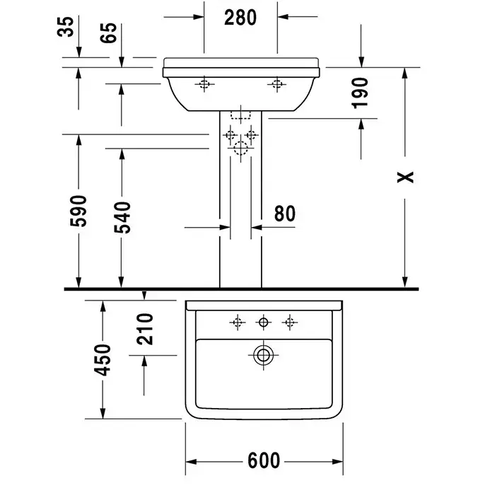 Duravit Starck 3 Раковина подвесная 600х450 мм с 1 отв под смеситель, с переливом, цвет белый