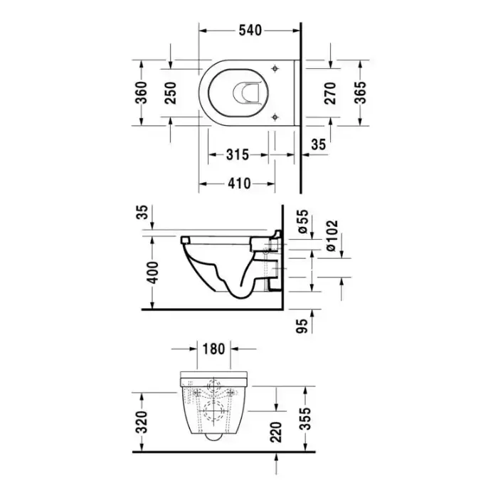 Duravit Starck 3 Унитаз 54х36см, подвесной, покрытие WondweGliss, с креплением Durafix, цвет: белый