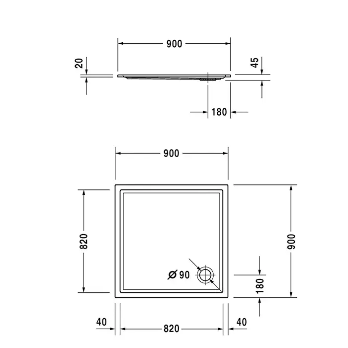 Duravit Starck Slimline Поддон акриловый квадратный 900x900х45mm, d90, цвет белый