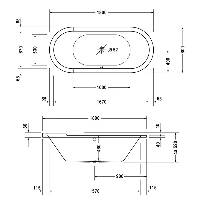 Duravit STARCK Ванна гидромассажная овальная, встраиваемая версия, с двумя наклонами для спины, с ножками и сливом-переливом