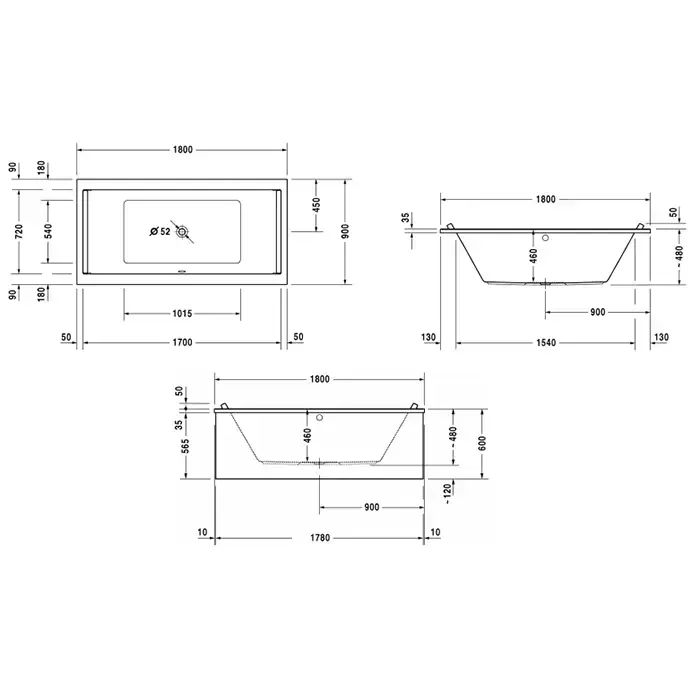Duravit STARCK Ванна акриловая прямоугольный вариант 1800х900 mm, встраиваемая, с 2 наклонами для спины, цвет белый