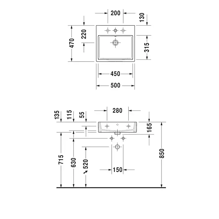 Duravit Vero Air Раковина 50cm, w, с площадкой, без отв. под смеситель, на столешницу, Цвет белый
