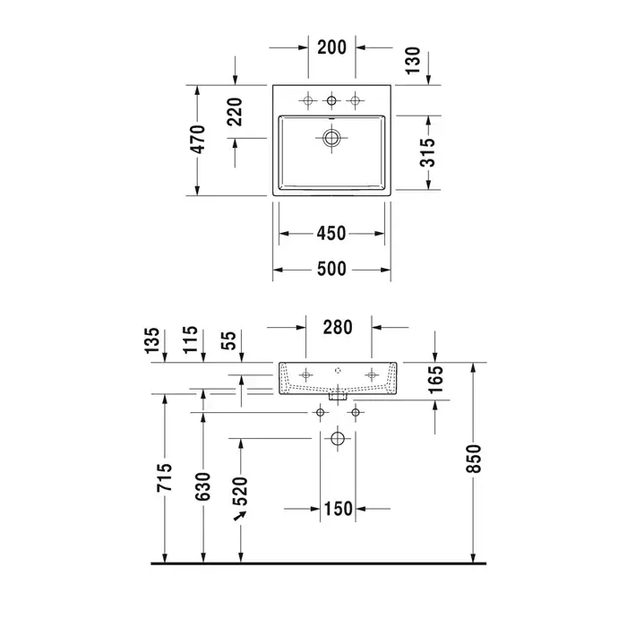 Duravit Vero Air Раковина 50cm, без перелива, с площадкой, без отв. под смеситель, на столешницу, Цвет белый