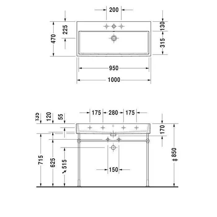Duravit Vero Air Раковина 100cm, с переливом, с площадкой, без отв. под смеситель, на столешницу, Цвет белый