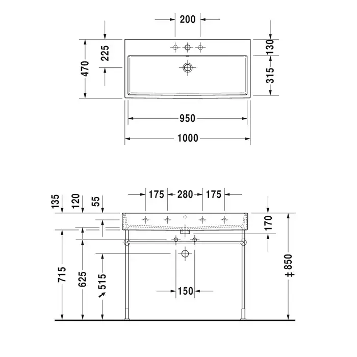 Duravit Vero Air Раковина 100cm, с переливом, с площадкой, с 1 отв. под смеситель, на столешницу, Цвет белый