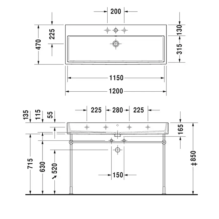 Duravit Vero Air Раковина 120 cm, без перелива, с площадкой, с 3 отв. под смеситель, Цвет белый
