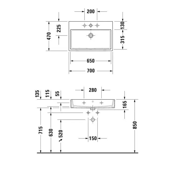 Duravit Vero Air Раковина 700х470 мм, с переливом, с площадкой, с 1 отв. под смеситель, Цвет белый
