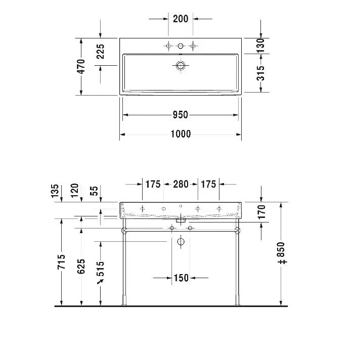 Duravit Vero Air Раковина 100cm, без перелива, с площадкой, без отв. под смеситель, Цвет белый