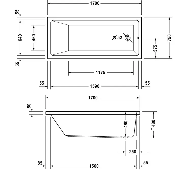 Duravit Vero Air Ванна 170x75см, встраиваемая, built-in, цвет: белый