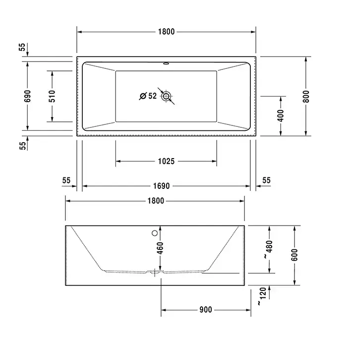 Duravit Vero Air Ванна 1800x800мм, Vorwand, цвет белый,на каркасе и акрил. панелью