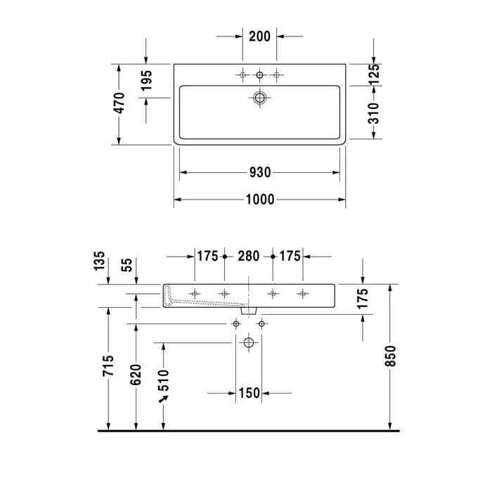 DURAVIT VERO Раковина 1000x470 мм., с 1 отверстием для смесителя, с переливом, с покрытием WonderGliss, цвет белый