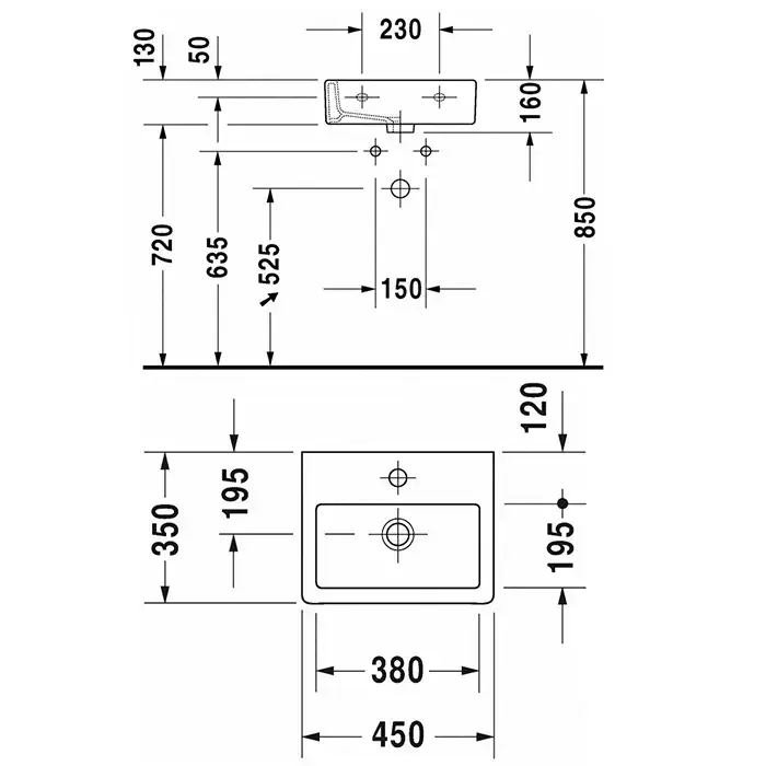 Duravit Vero Мебельная раковина для рук, с перел., с 1 отв. под смес., 450x350мм, Цвет: Белый