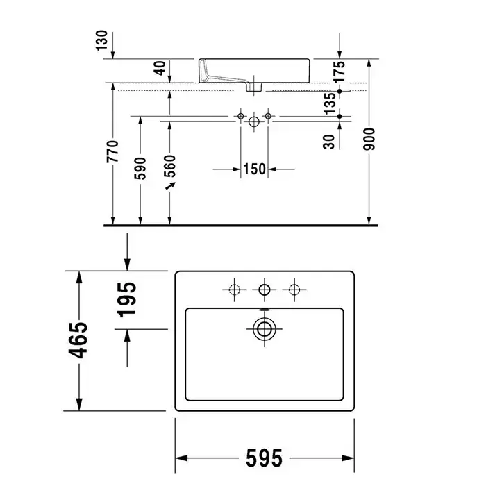 Duravit Vero Раковина, шлифованный вариант, с перел., с 1 отв. под смес., включая крепление, 595x465, Цвет: Белый