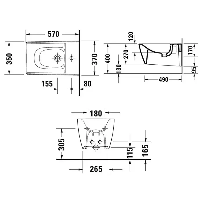 Duravit Viu Биде подвесное 370х570мм , с 1 отв под смеситель, цвет белый ( с креплением Durafix)