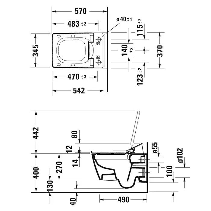 Duravit Viu Унитаз подвесной 370x570мм, rimless, sensowash для #611600, с крепление Durafix, с покрытием WG, цвет: белый