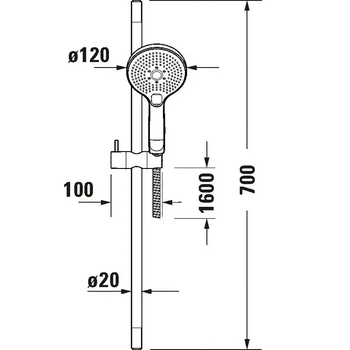 Duravit Душевой комплект: держатель для душа 700 мм, шланг 1600 мм и ручной душ Ø 130, 3 режима Click, хром
