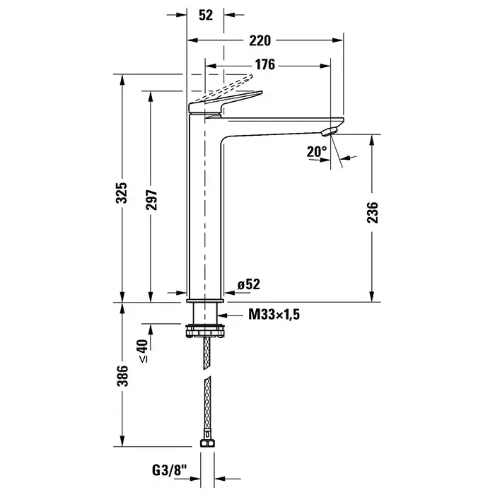 Duravit Wave Смеситель на раковину XL, без донного клапана, H - 297 мм, выступ - 176 мм, хром