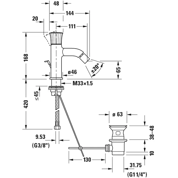 Duravit White Tulip Смеситель для биде, на 1 отв., с донным клапаном цвет: хром