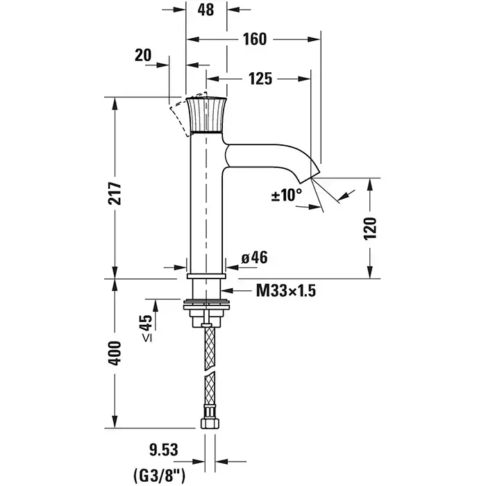 Duravit White Tulip Смеситель для раковины на 1 отв., без донного клапана, h=217мм, излив 125мм цвет: хром