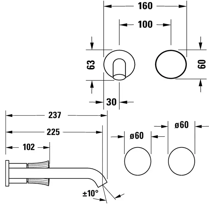 Duravit White Tulip Смеситель для раковины,, встраиваемый, излив 225мм (внешние части) цвет: хром