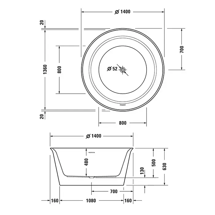 Duravit White Tulip Ванна отдельностоящая, D140хh63см , со спец сливом и переливом, цвет: белый