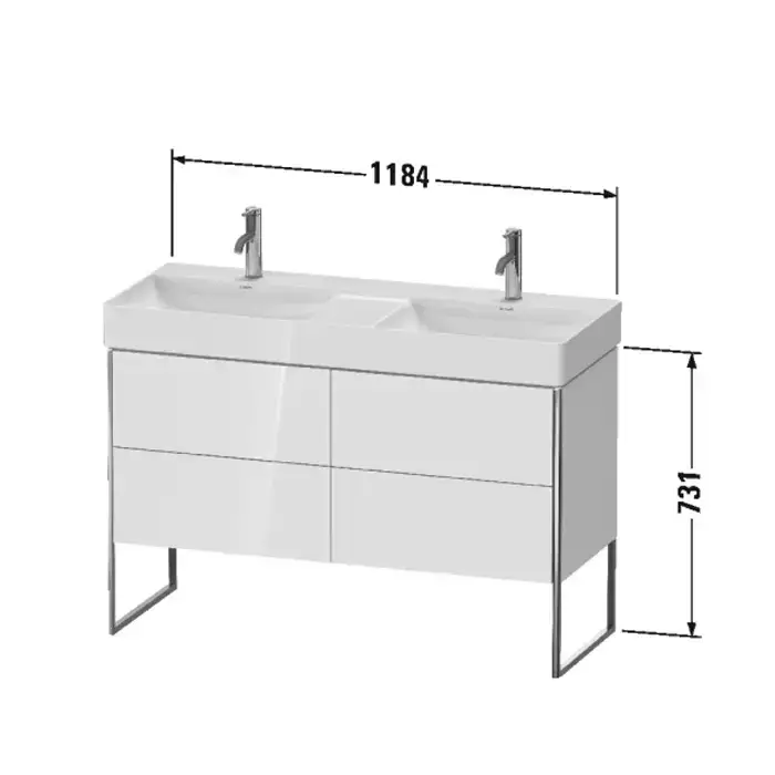 Duravit XSquare Тумба напольная под раковину # 235312, 4 ящика, 731x1184x460мм, цвет White High Gloss