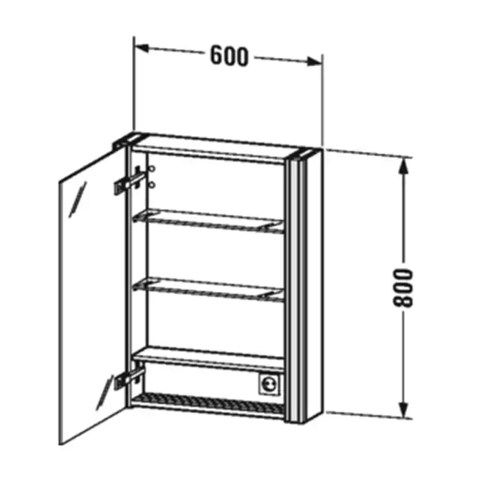 Duravit Xsquare Шкаф зеркальный 60х15.6см., Dx, 1 зерк дверца, 2 стекл полки, 1 дер полка, 1 выкл, 1 розетка, цвет: скандинавский белый шелковисто-матовый