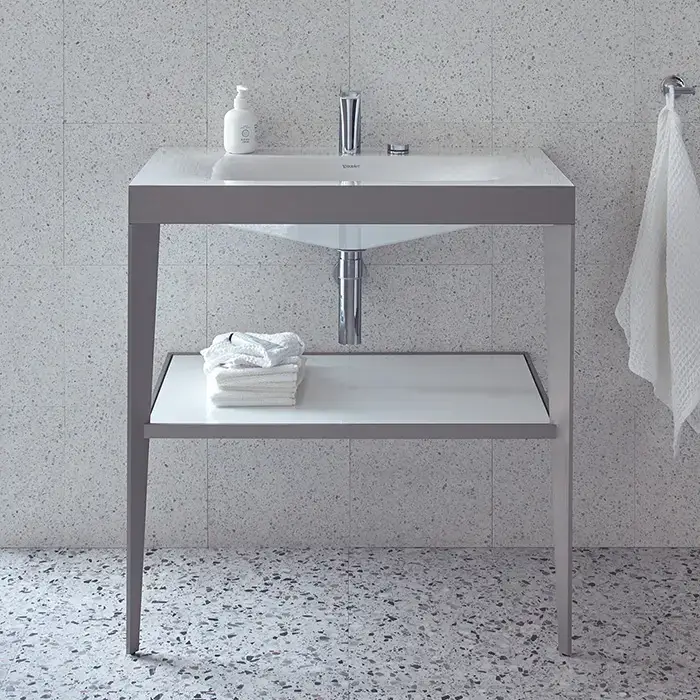 Duravit XViu Консоль напольная, 80x48x85см с полкой, с раковиной без перелива, 2 отв., цвет: champagne matt/white high gloss lacquer