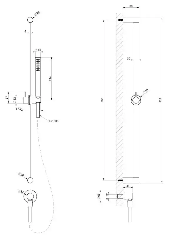 Gessi 316 Душевой комплект, + вывод, держатель, шланг 1,50 м и душевая лейка, цвет: brushed black metal pvd