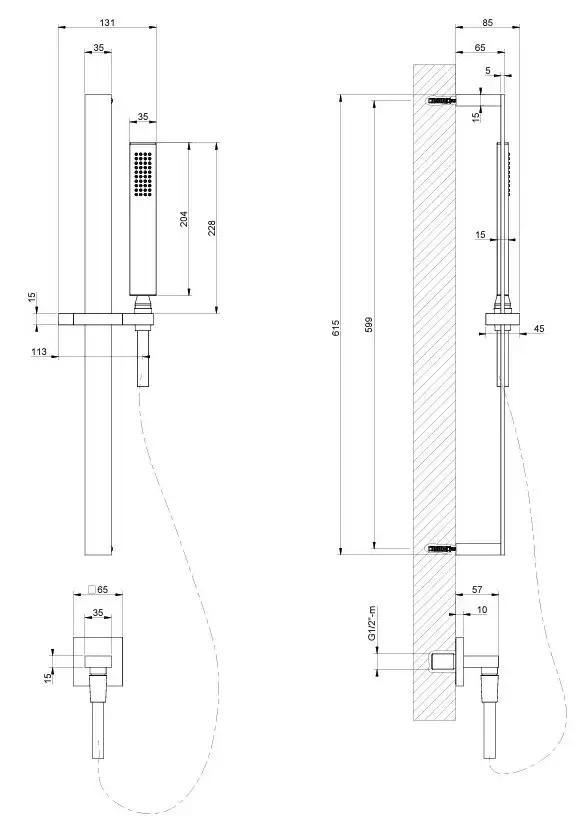 Gessi Rettangolo Вывод воды с держателем для душевой лейки, цвет: Black XL