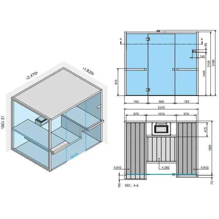 Effegibi Air 105 Corner Сауна 247x182xh213см, SX, отделка: осина натуральная