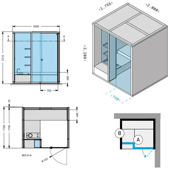 Effegibi BodyLove H Хаммам 200x176x220см, угловая DX, цвет: без отделки