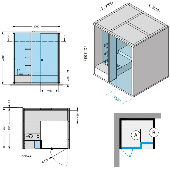 Effegibi BodyLove H Хаммам 200x176x220см, угловая DX, цвет: без отделки