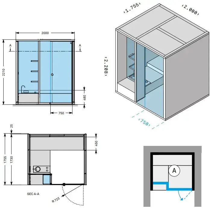 Effegibi BodyLove H Хаммам 200x176xh220 см, размещение в нишу L.H., отделка керамогранит Champagne
